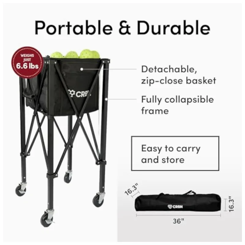 Weighing only 6.6 lbs yet engineered for durability, the hopper features a reinforced aluminum frame and industrial-grade nylon basket. The patented collapsible mechanism lets you fold it flat in under 10 seconds — ideal for vans, storage closets, or multi-court rotations. Detachable basket design allows quick cleaning and modular use (e.g., carry basket separately to warm-up zones).